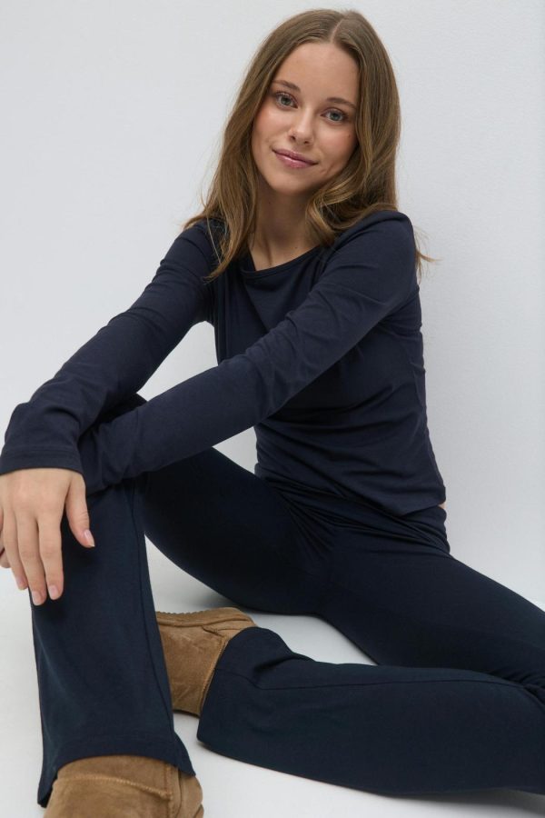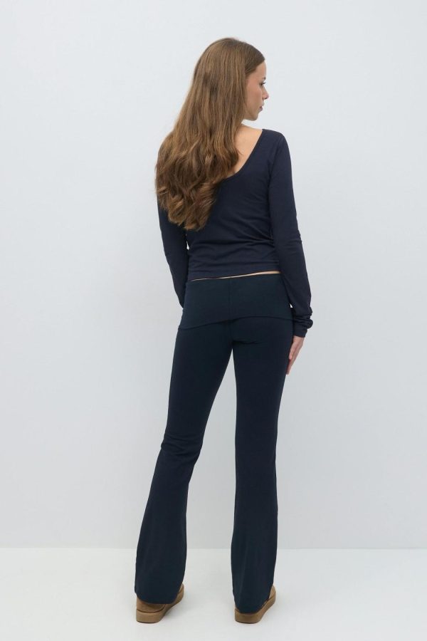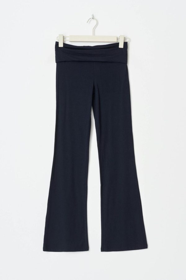Lågmidjade yoga pants med utsvängda ben. Byxan är marinblå och har nervikt midja.