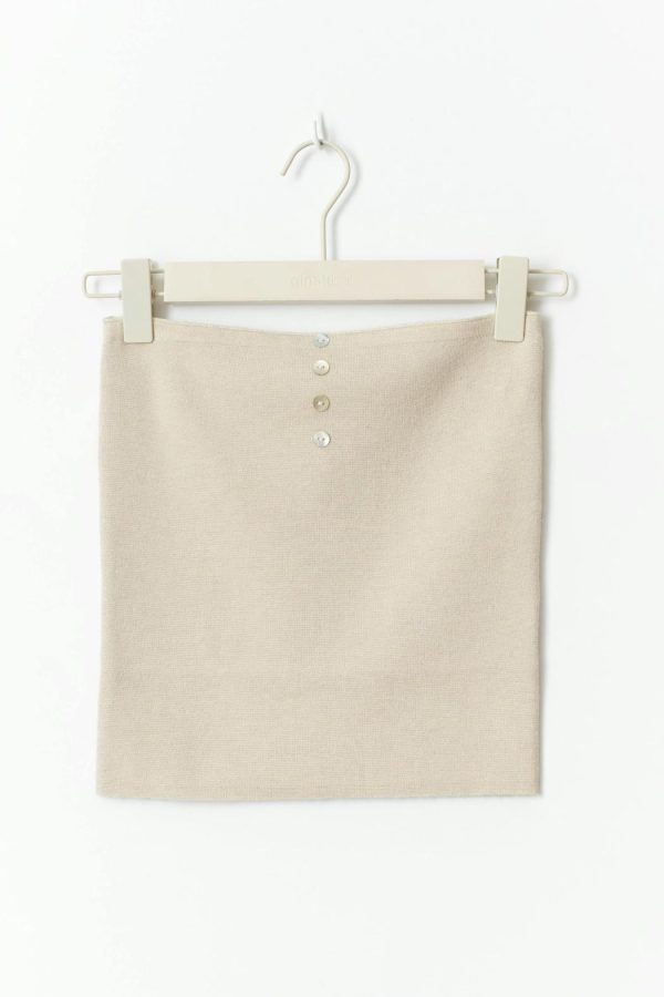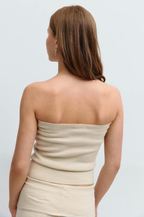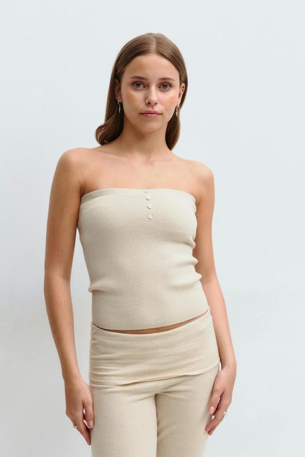 Stickad tubtopp med knappdetaljer framtill. Toppen är beige och har normal passform. Den har foder.