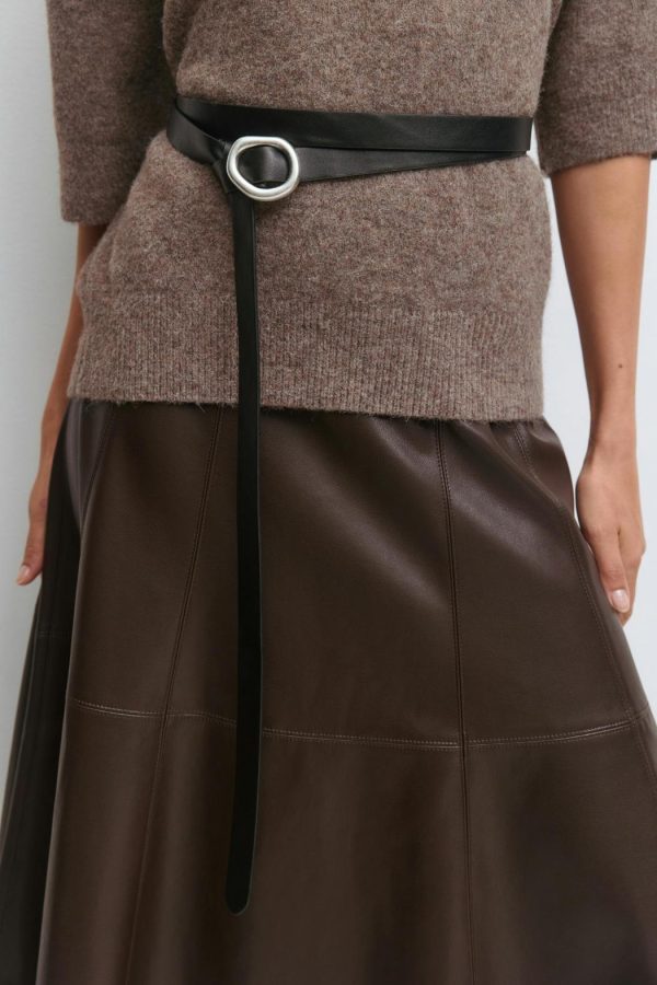 Bälte i läderimitation med ett metallspänne. Bältet är svart och silverfärgat.