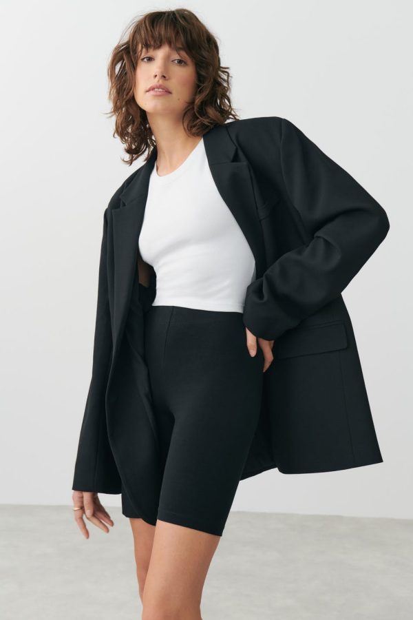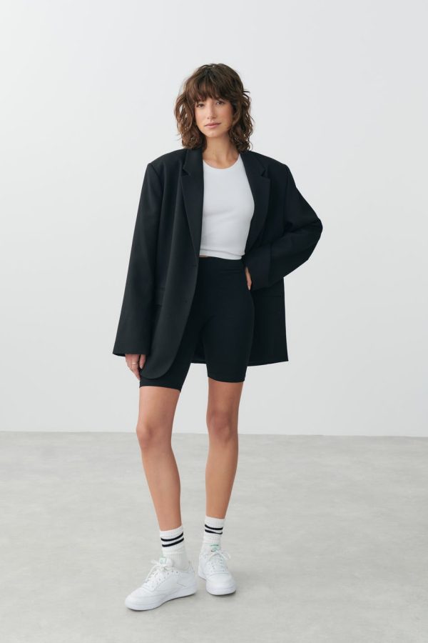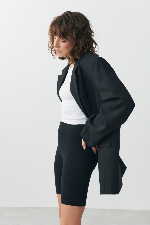 Biker shorts med en resår i midjan. Shortsen är svarta och korta.