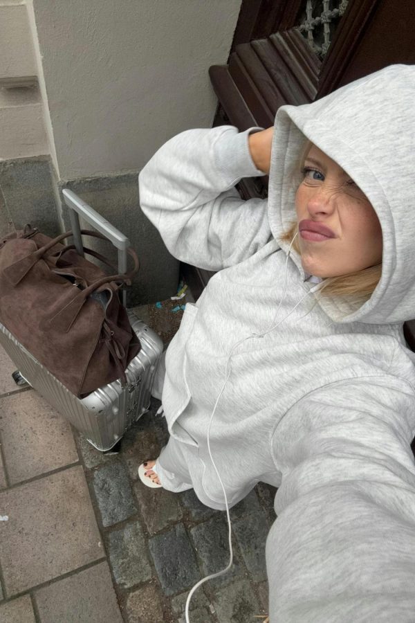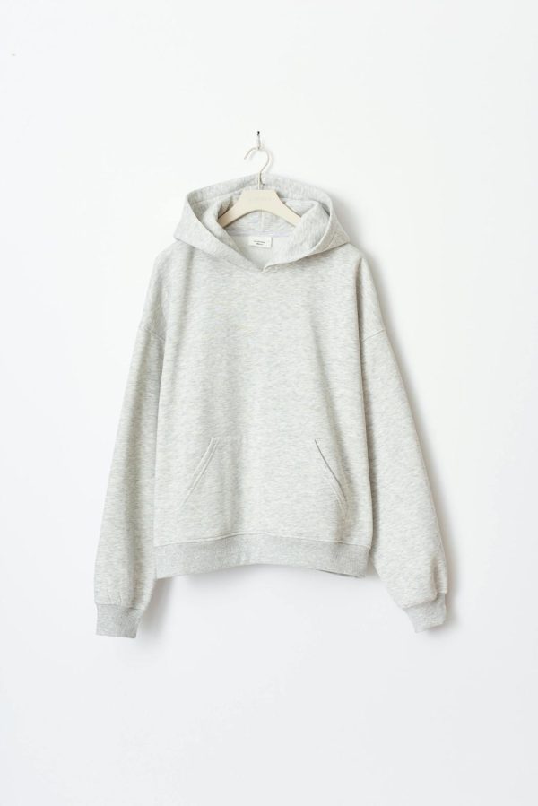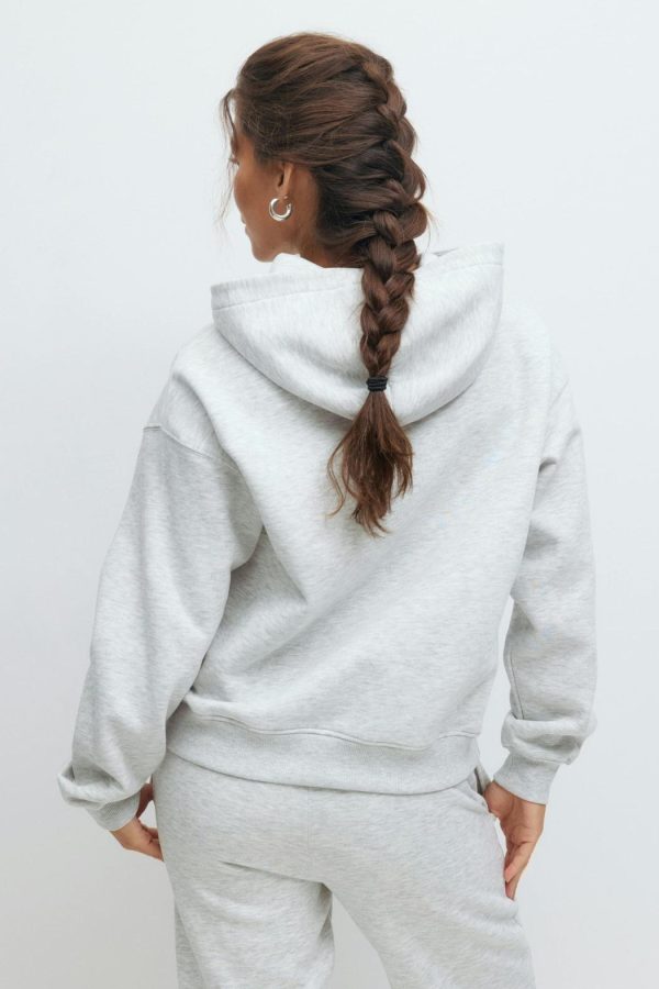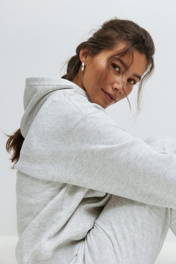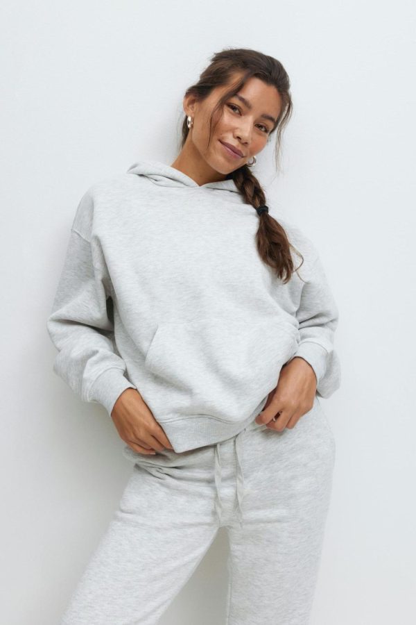 Oversized hoodie med känguruficka framtill. Hoodien är grå och har fodrad huva med dragsko. Den har nedhasade axlar och ribbad mudd vid ärmslut och i nederkant.
