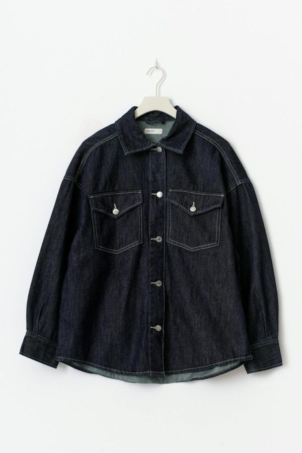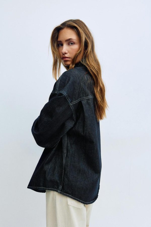 Jeansskjorta utan stretch med oversize fit. Skjortan är mörkblå och har knäppning fram. Den har krage, bröstfickor med lock och lång ärm med knapp och manschett.