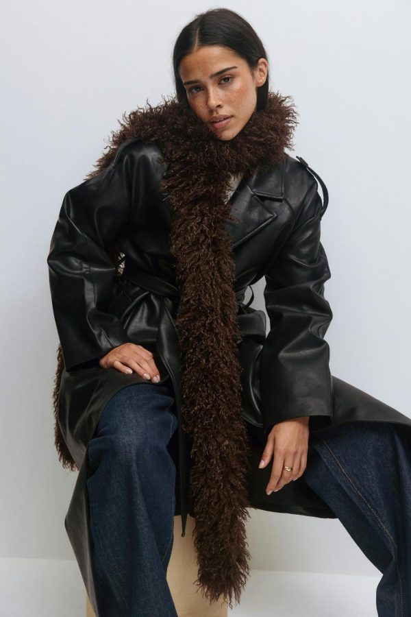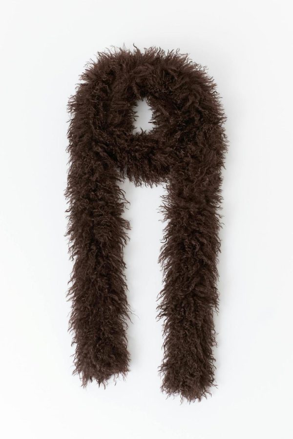 Hårig scarf med en mjuk kvalitet. Scarfen är brun och fluffig.