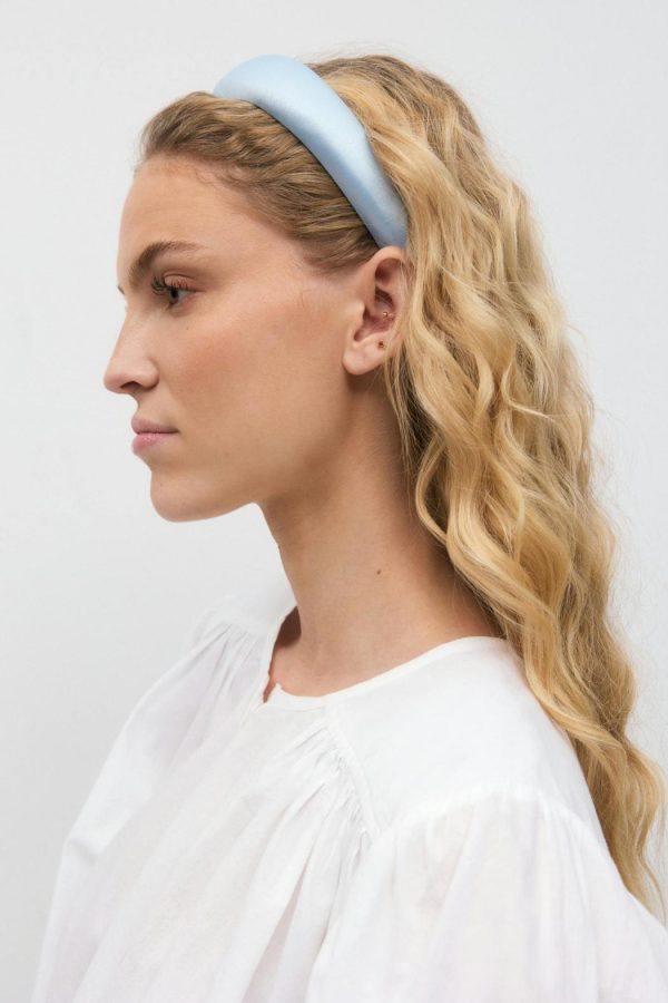 Stort diadem i satin. Diademet är blått.