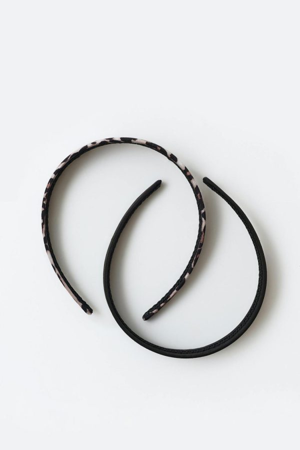 2-pack diadem. Diademen är svarta och leopardmönstrade.