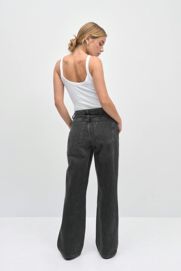 Vida jeans med medelhög midja i denim utan stretch. Jeansen är svartgråa och har normallängd. De har dragkedjegylf och fickor fram och bak. Se gärna vår storleksguide för att hitta din storlek.