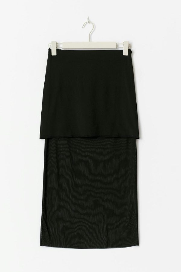 Midikjol med mesh nedtill. Kjolen är svart och har en medelhög midja.