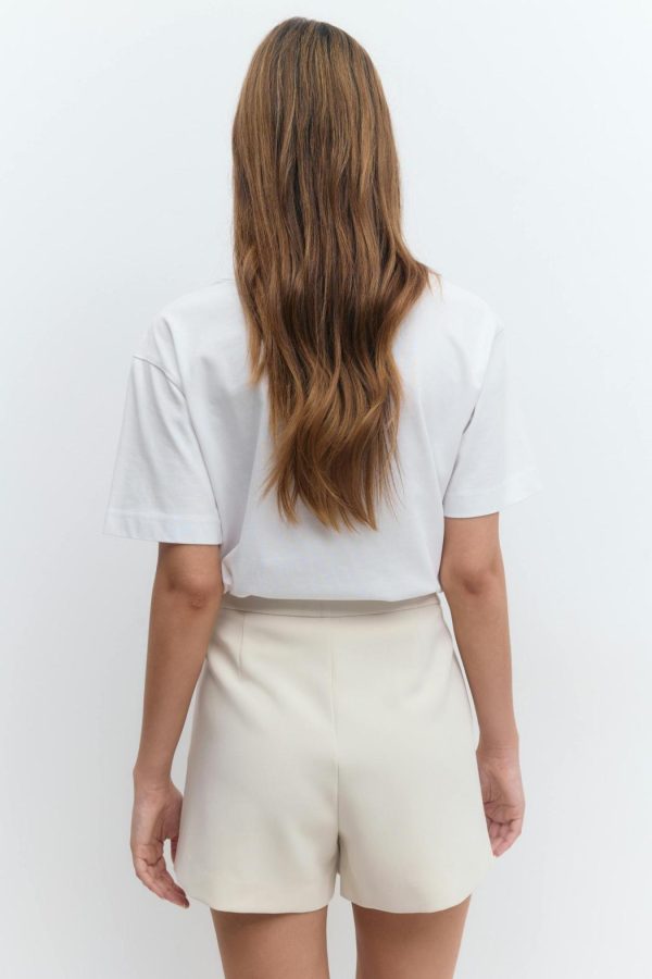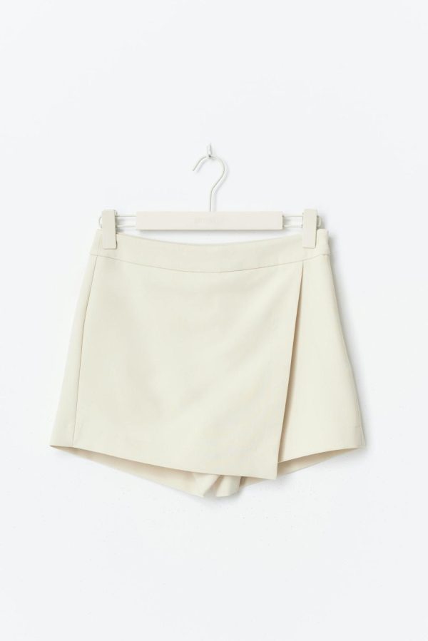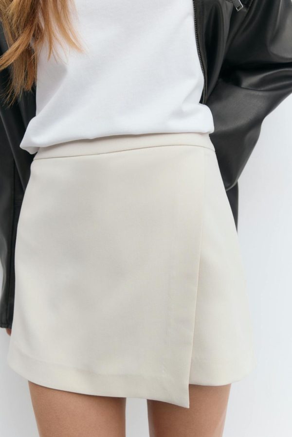 Kort kjol med shorts. Kjolen är creme och har omlottdesign. Den har normal passform och fuskfickor framtill.