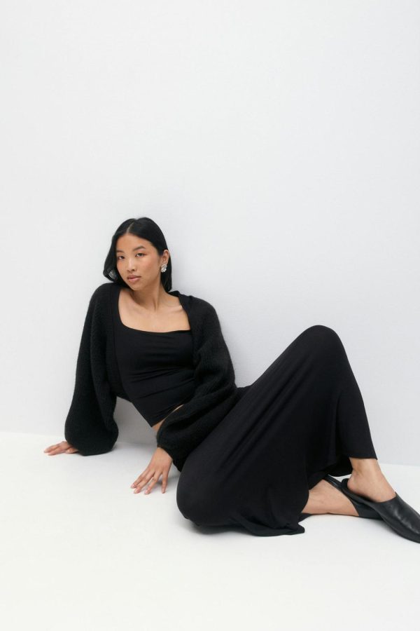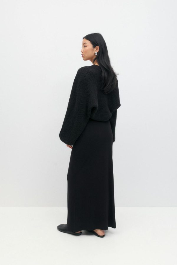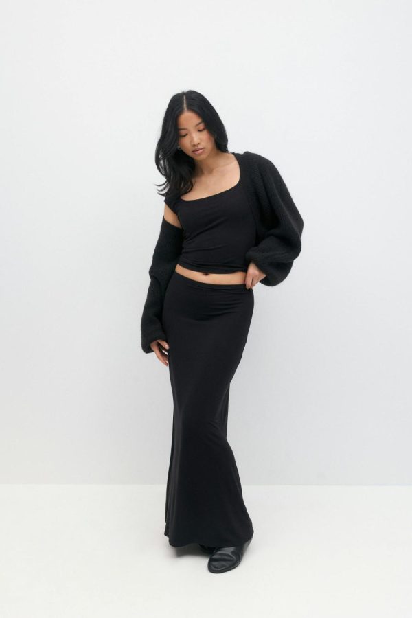 Lågmidjad långkjol i mjuk viskos med mjuk resår i midjan. Kjolen är svart och har normal passform.