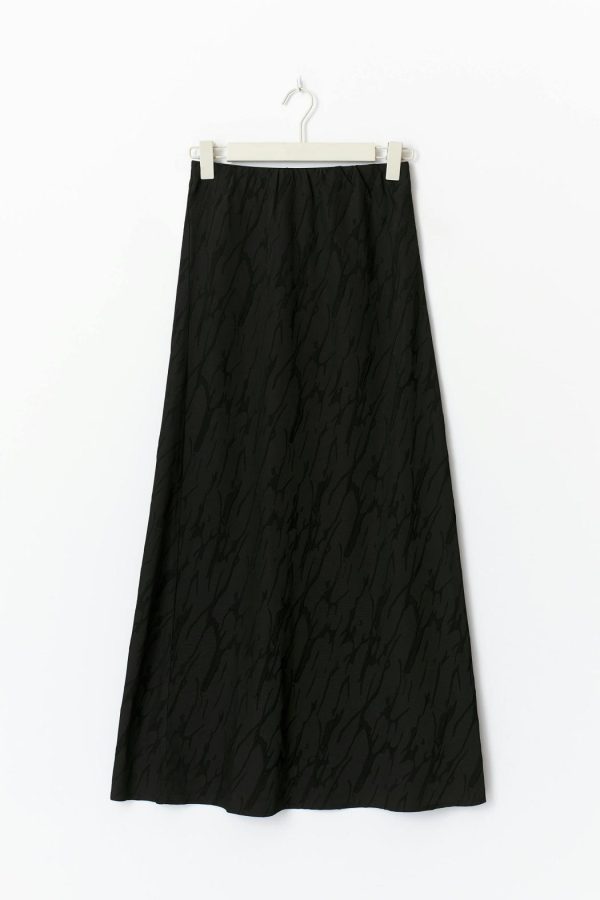 Strukturerad långkjol med en resårmidja. Kjolen är svart och har en normal passform. Den har en maxi-längd och en medelhög midja.