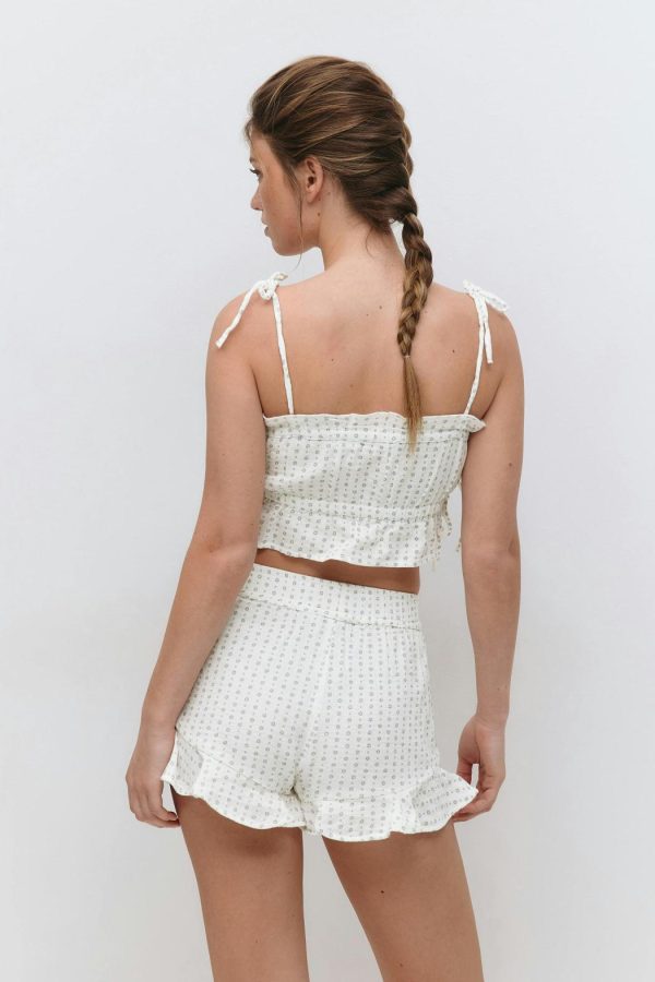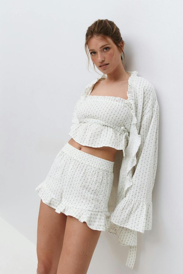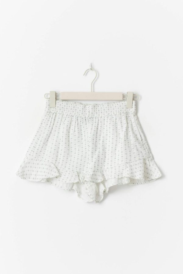 Mönstrade shorts i gauze med volangkant nedtill. Shortsen är vita och korta och har elastisk midja. De har normal passform.