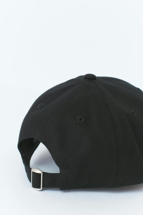 Sportig keps med broderi framtill. Kepsen är svart och har reglerbar slejf med guldfärgat metallspänne bak.
