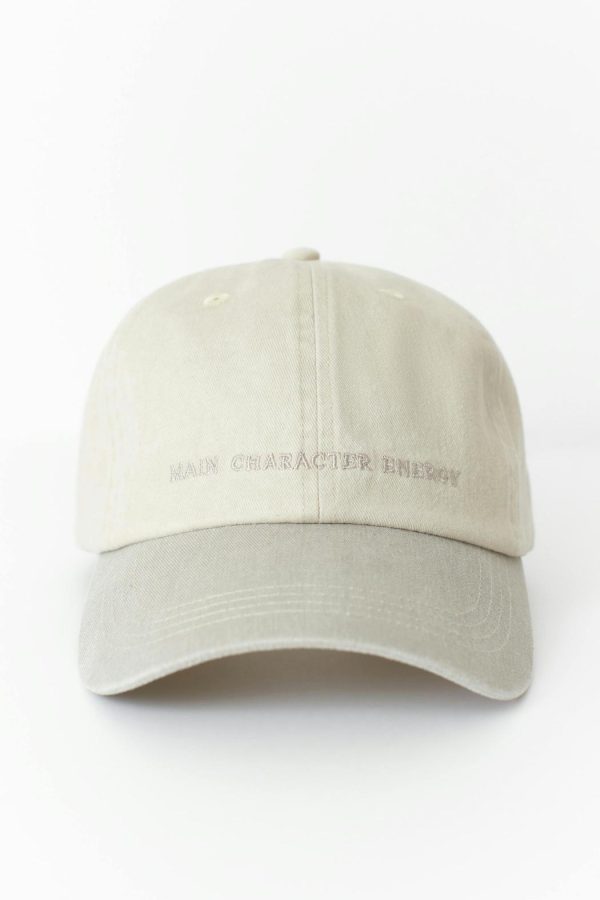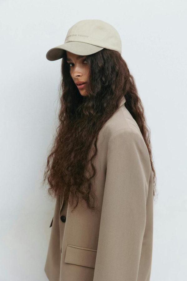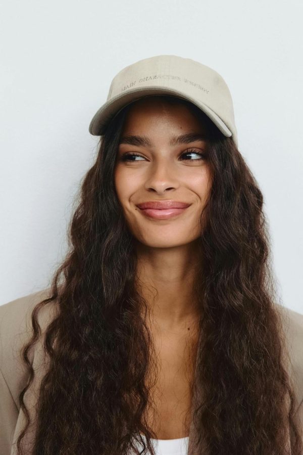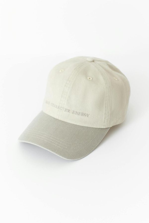 Keps med broderad text framtill. Kepsen är beige och har urtvättad look. Den har reglerbar slejf baktill.
