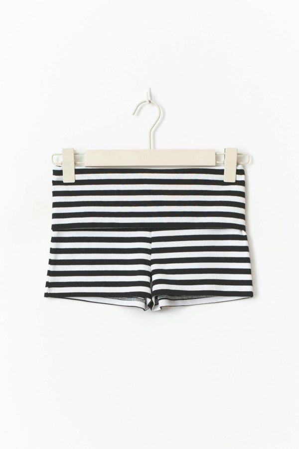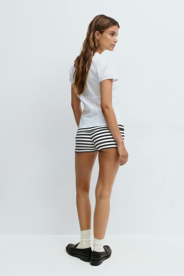 Randiga shorts med nervikt midja. Shortsen är svarta och korta och har figurnära passform. De har låg midja med resår.