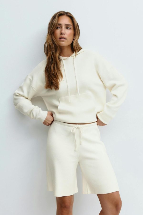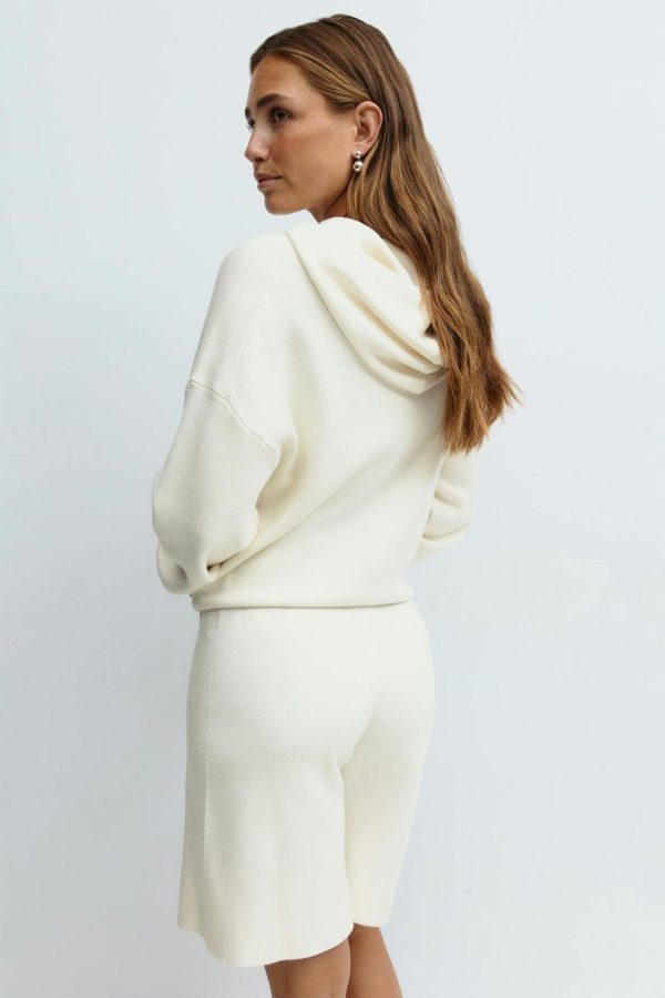 Stickade bermudashorts med knytning fram. Shortsen är vita och har raka ben. De har medelhög midja och resår i midjan.