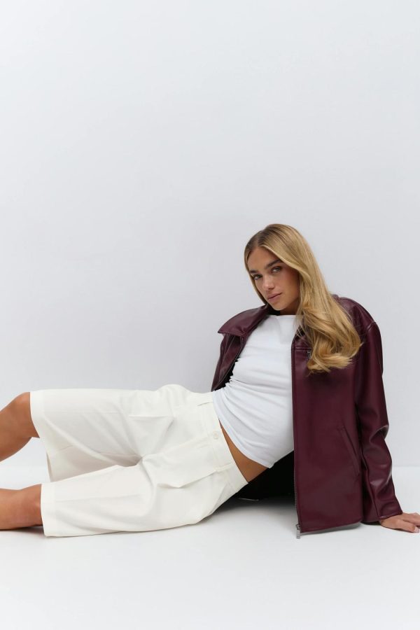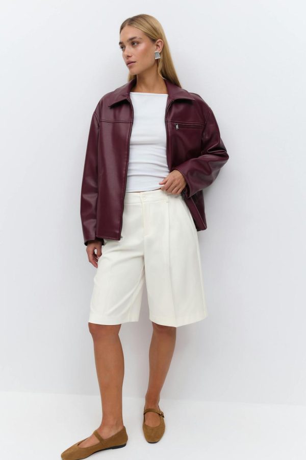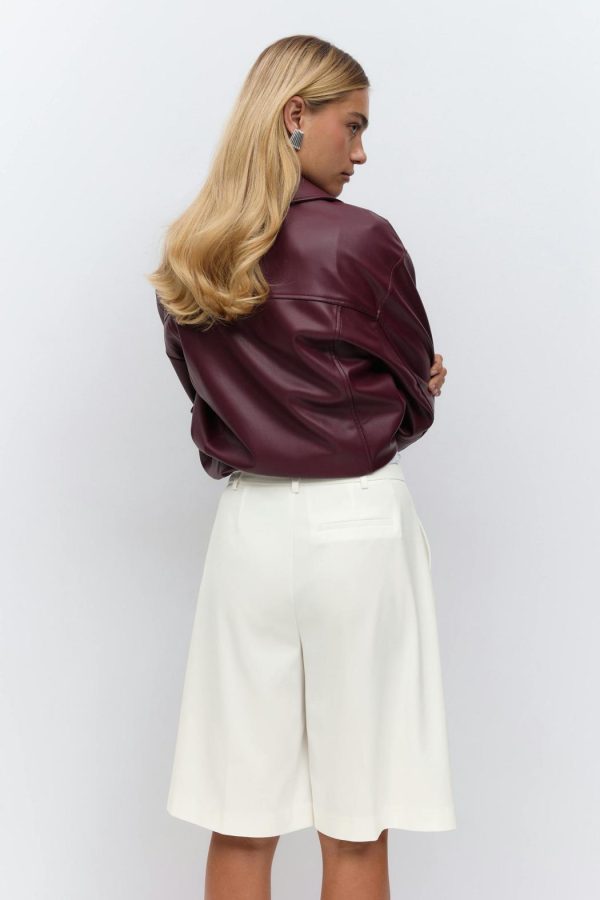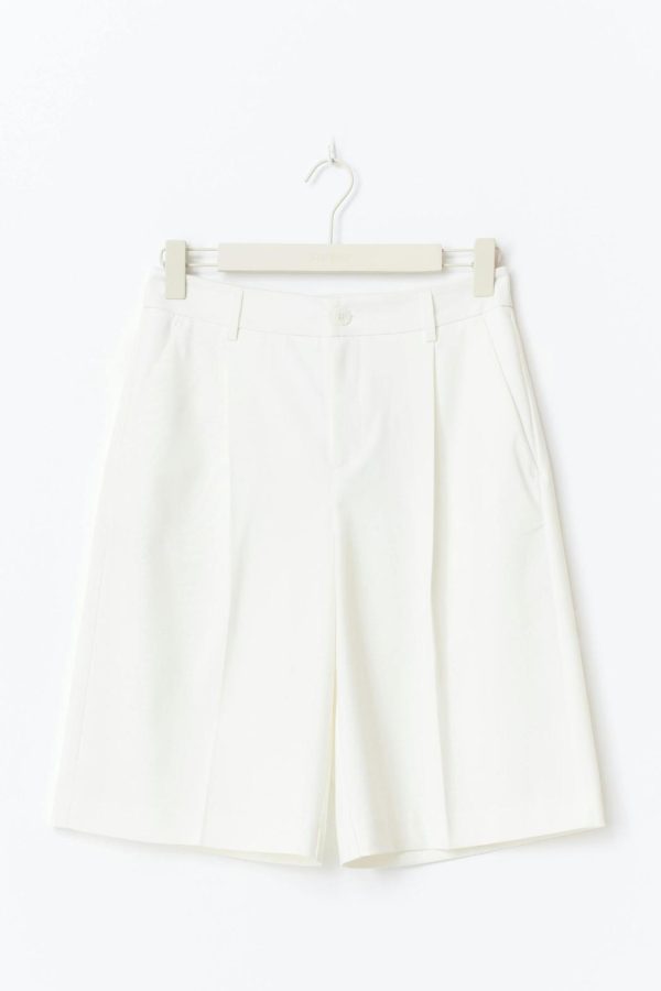Knälånga bermudashorts med veck fram. Shortsen är vita och har fickor i sidorna. De har raka ben, medelhög midja, bälteshällor och bakficka.