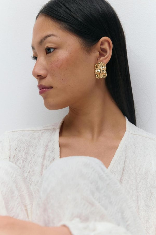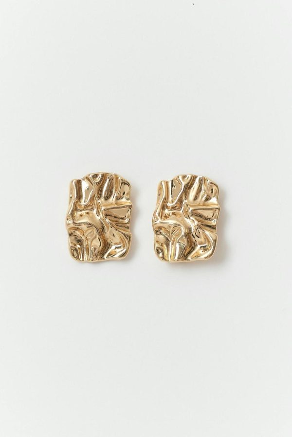 Fyrkantiga örhängen med krinklad design. Örhängena är guldfärgade och har blank finish.