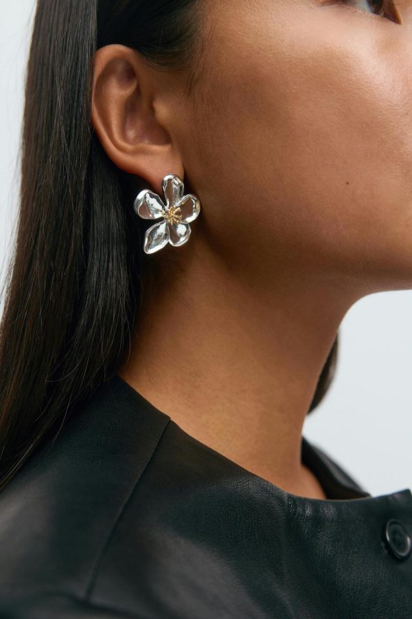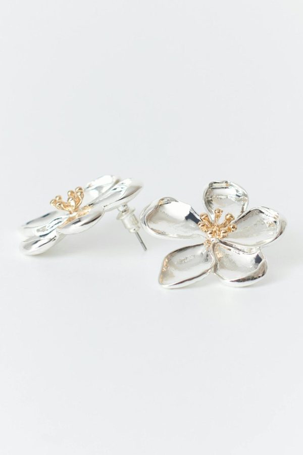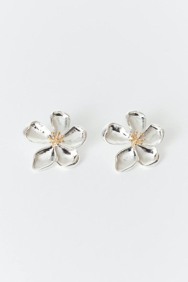 Örhängen i 3-pack. Örhängena är silverfärgade och blomformade.