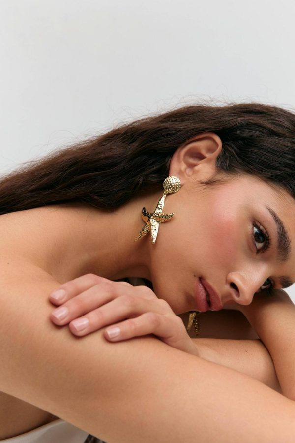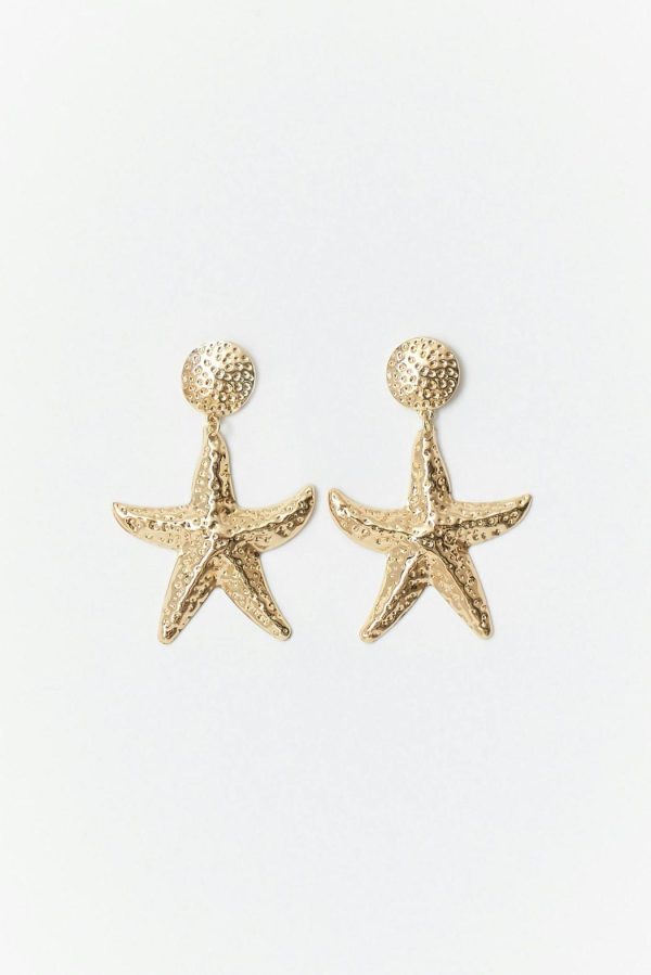 Örhängen med sjöstjärna. Örhängena är guldfärgade.