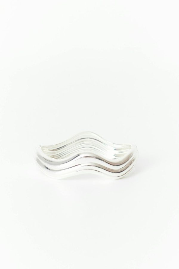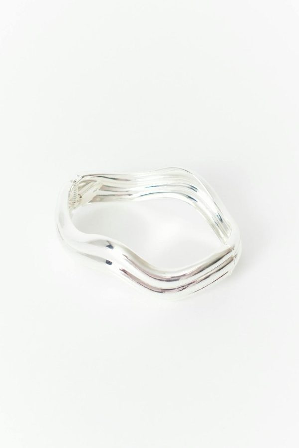 Stelt armband med vågig design. Armbandet är silverfärgat och har blank finish.