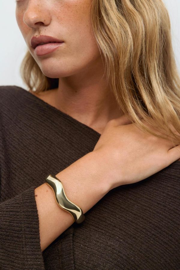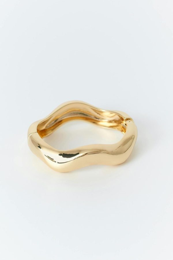 Stelt armband med vågig design. Armbandet är guldfärgat och har blank finish.