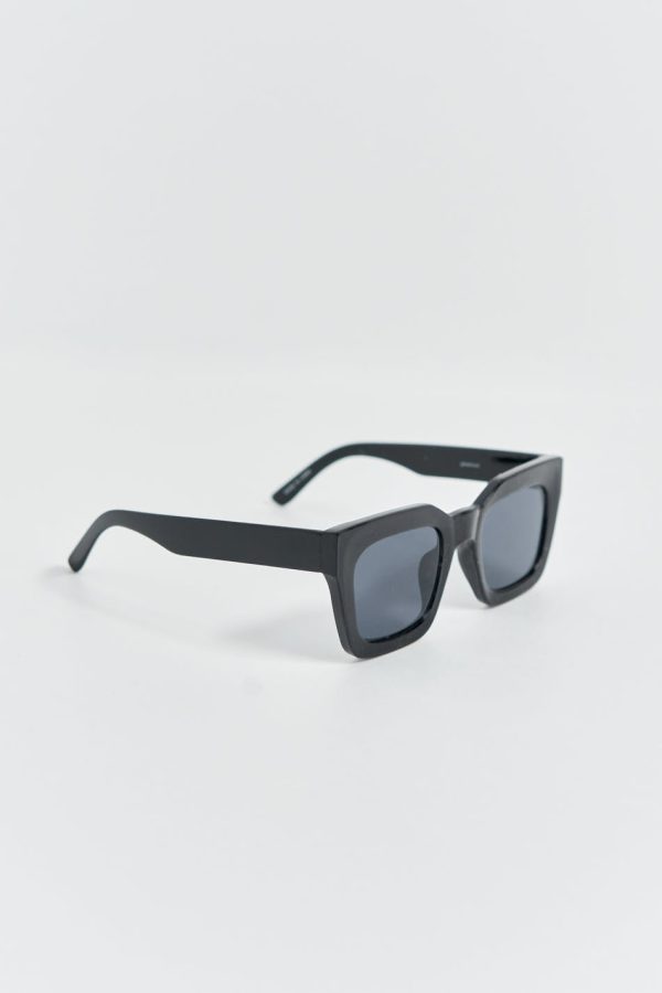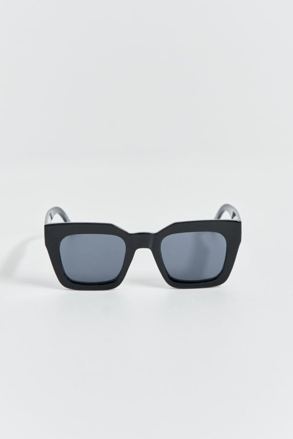 Solglasögon med chunky plastbågar. Solglasögonen är svarta och har tonade glas med UV400-skydd.