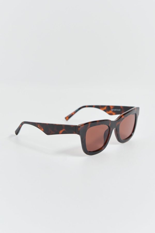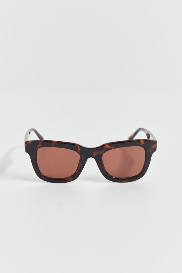 Sköldpaddsmönstrade solglasögon med chunky design. Solglasögonen är bruna och har plastbågar i återvunnen plast. De har glas med ett UV400-skydd.