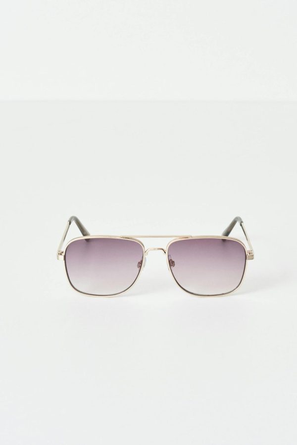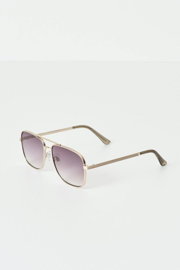 Pilot-solglasögon med smala metallbågar. Solglasögonen är bruna och guldfärgade och har tonade glas.