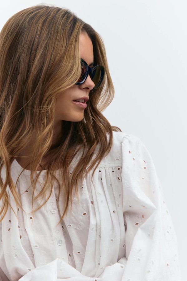 Ovala solglasögon med cateye-design. Solglasögonen är svarta och har plastbågar.
