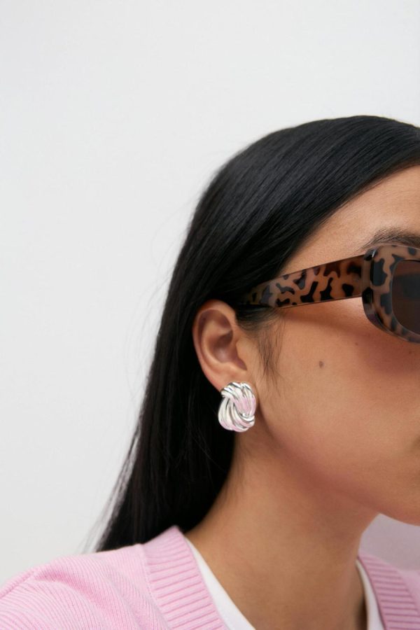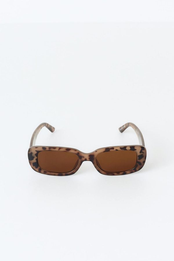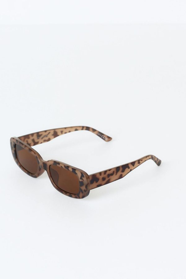 Rektangulära solglasögon med plastbågar i återvunnen plast. Solglasögonen är bruna och har tonade glas med ett UV400-skydd. Linsguide: Kategori 3.