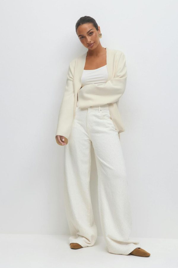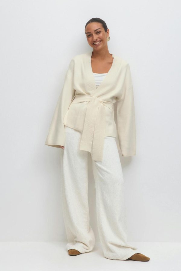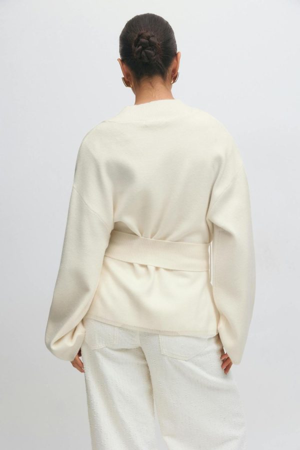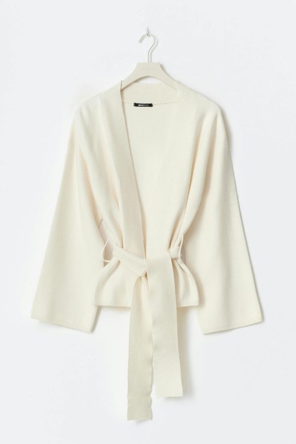 Stickad kofta med knytbälte i midjan. Cardigan har omlottdesign. Den har normal passform, v-ringning och långa ärmar.