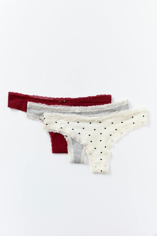 3-pack trosor i bomull med en spetskant. Trosorna är brazilian och har en låg midja. De har en fodrad gren.