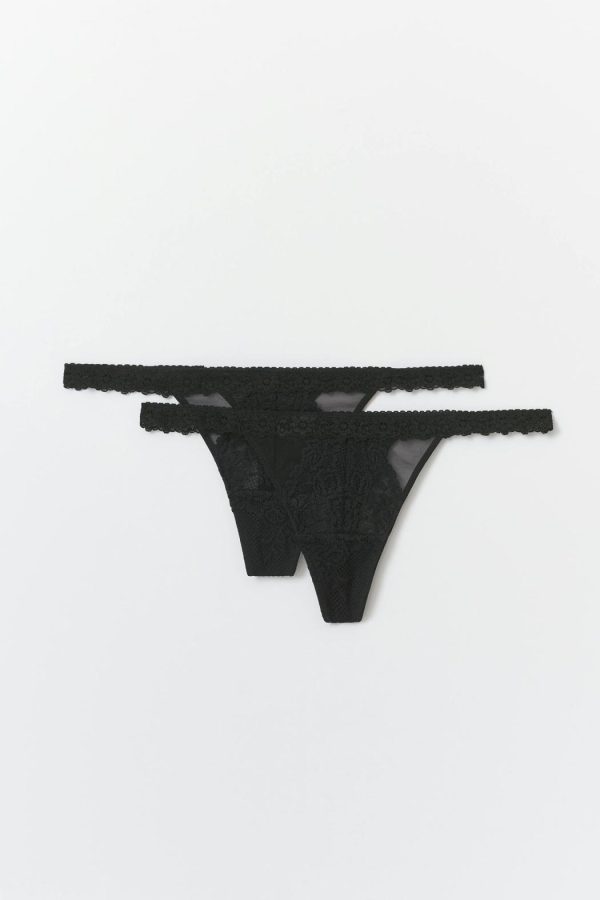 2-pack stringtrosor med spetskant. Stringtrosorna är svarta och har en låg midja. De har en fodrad gren.