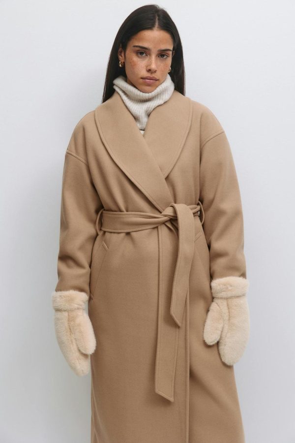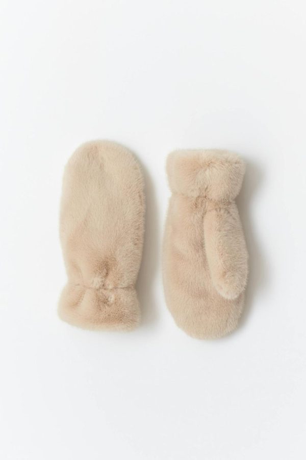 Tumvantar i fuskpäls med fluffig kvalitet. Vantarna är beigea.