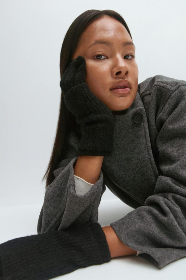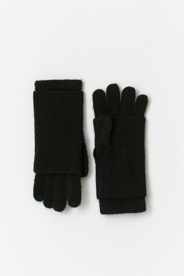 Stickade fingervantar med extra lång, uppvikt mudd.