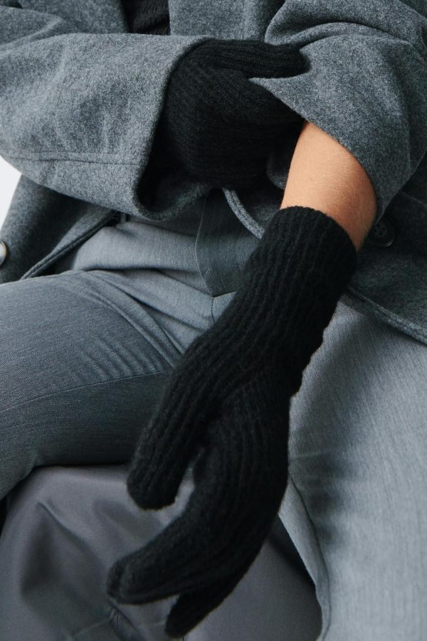 Långa fingervantar med ribbstickad kvalitet. Fingervantarna är svarta och har figurnära passform.