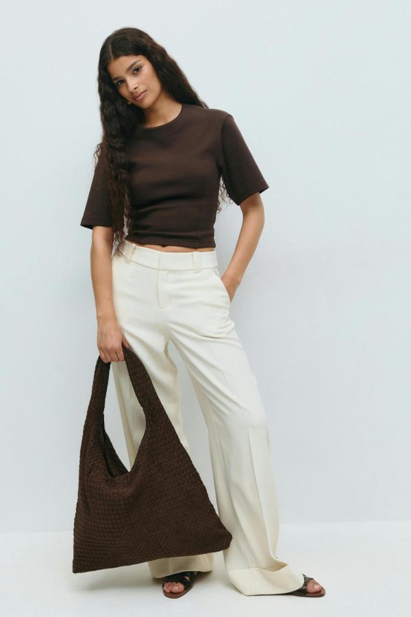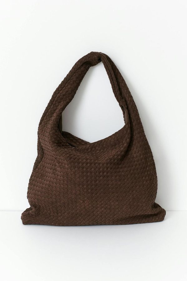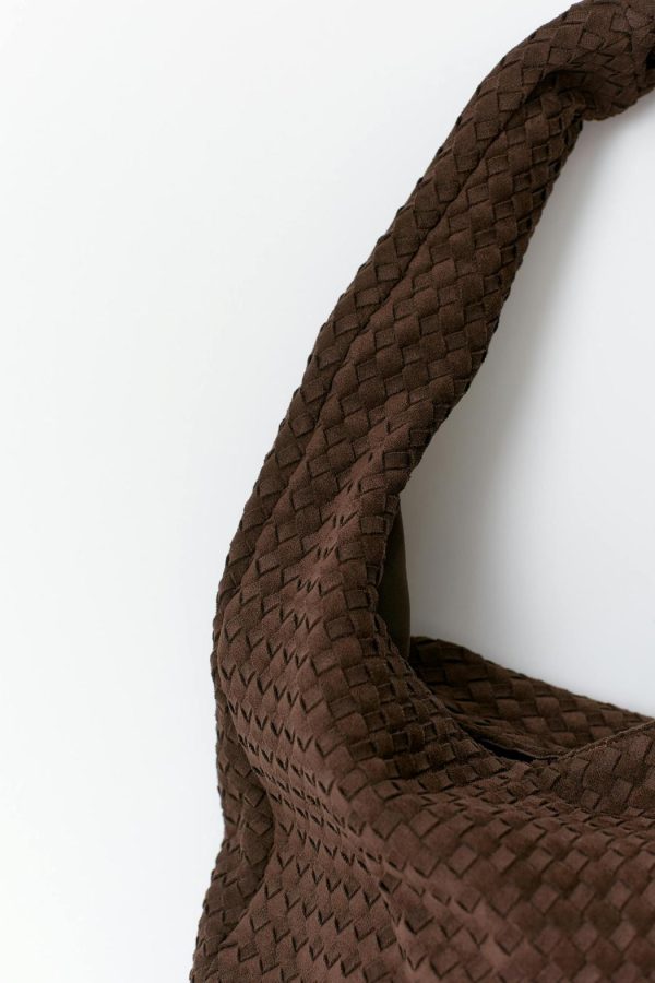 Flätad väska med tvinnad axelrem. Väskan är brun och har rymligt huvudfack. Den har dragkedjestängning upptill och innerfack.