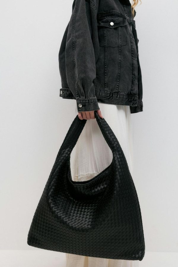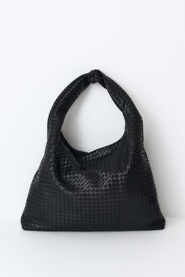 Flätad väska med tvinnat handtag. Väskan är svart och har rymligt fack. Perfekt vardagsväska.