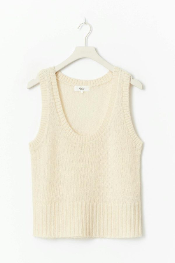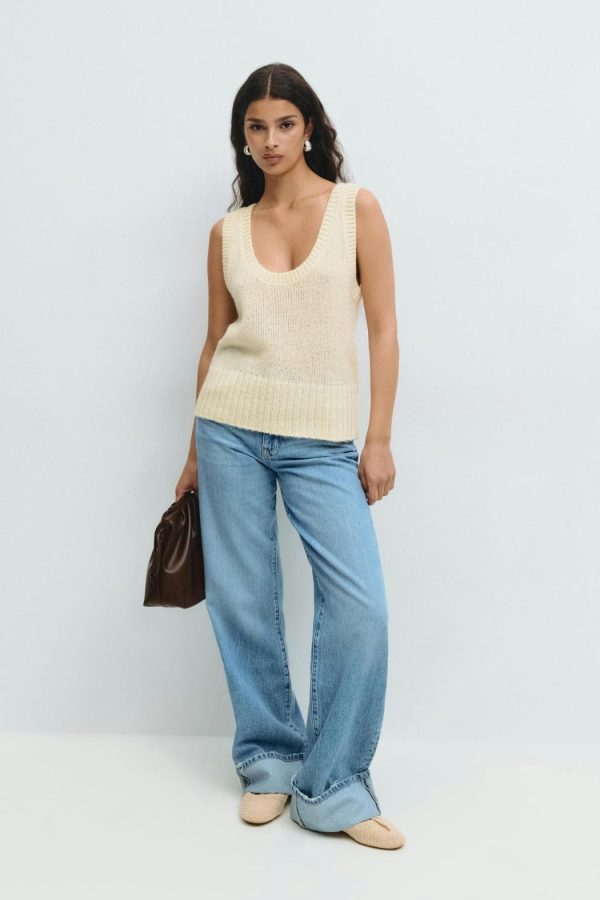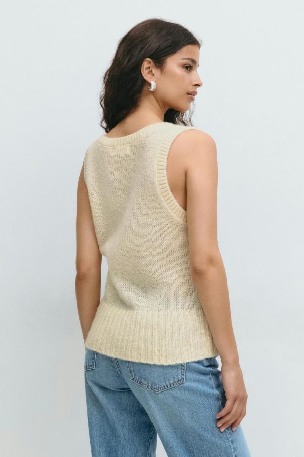 Stickad väst i ullblandning med lös passform. Västen är gul och har djup halsringning. Den har ärmlös design och ribbad nederkant.