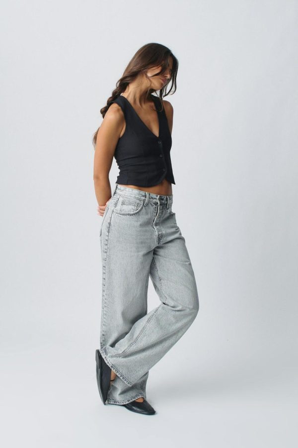 Väst med v-ringning. Västen är svart och har knäppning fram. Den har figurnära passform och croppad längd.