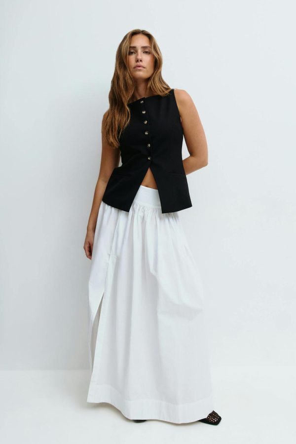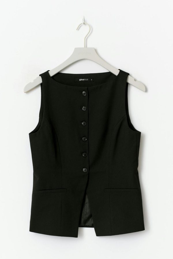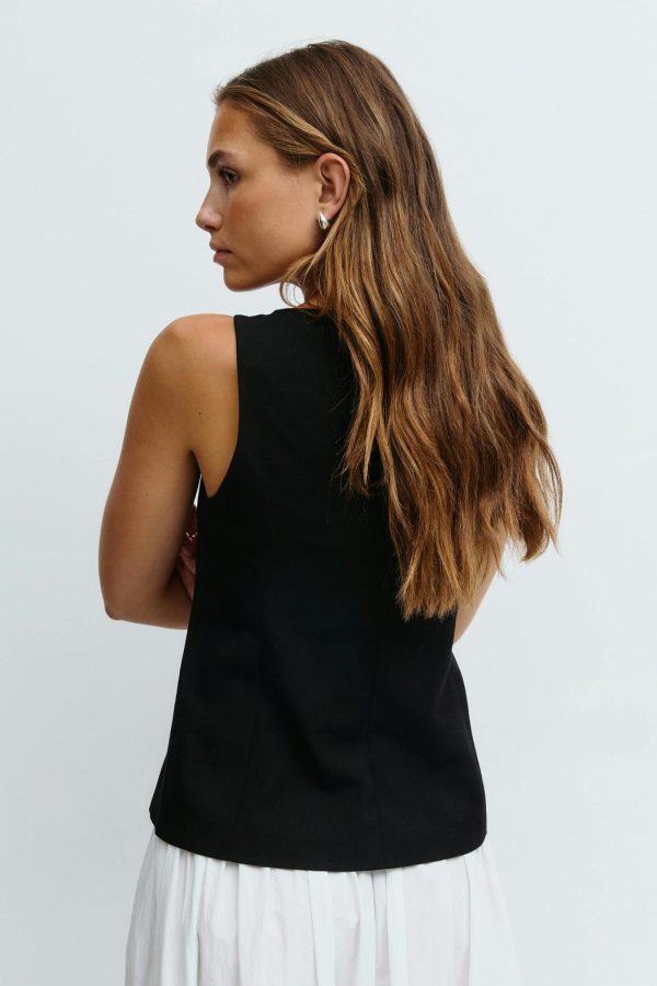 Kostymväst med knappar framtill. Västen är svart och har hög halsringning. Den har slim fit, fickor i sidorna och normallängd.