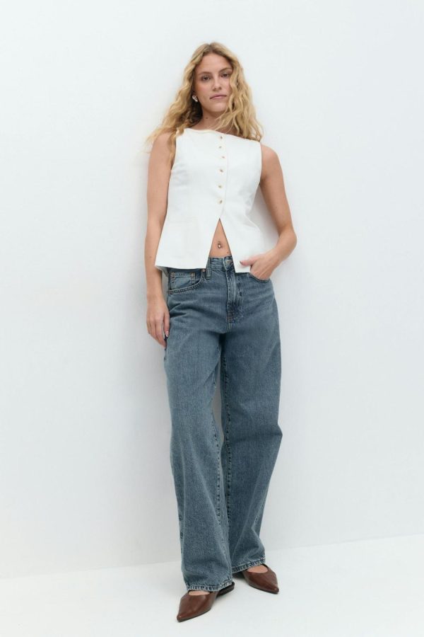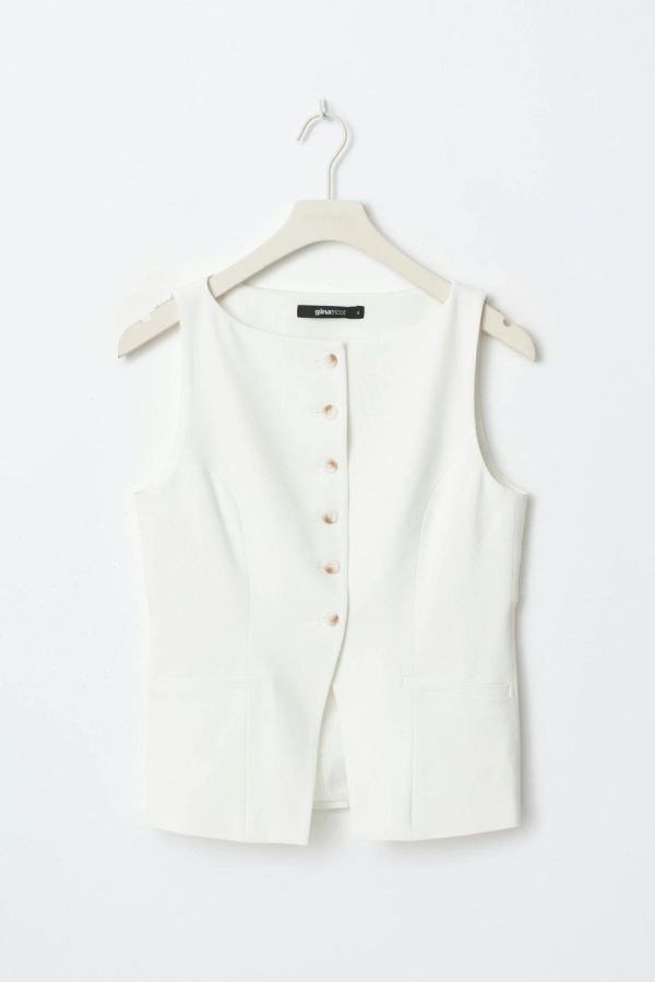 Kostymväst med slim fit. Västen är vit och har hög halsringning. Den har knäppning fram, passpoalfickor i sidorna och normallängd.